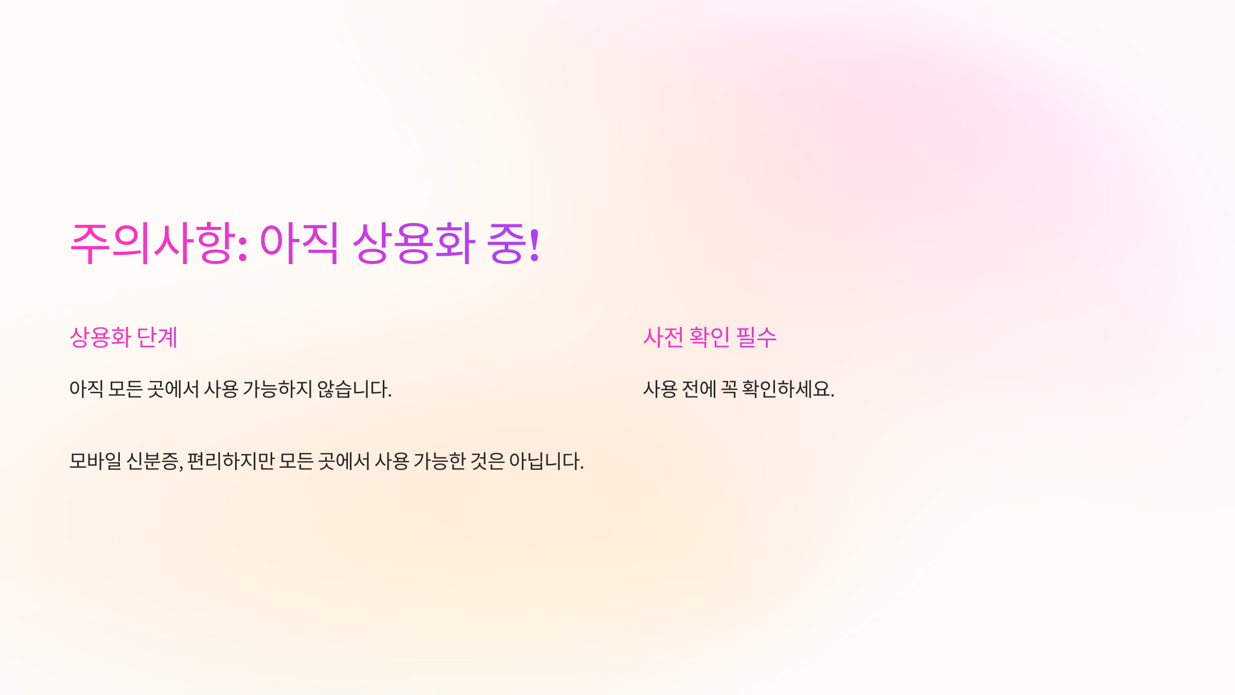 하지만 아직 모바일 신분증 상용화가 완전히 이루어지지 않은 곳도 있어 주의가 필요하다.