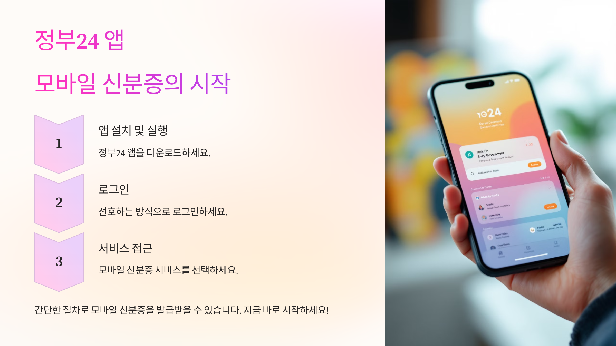 정부24 앱을 통해 간단한 인증 절차를 거치면 단 1분 만에 신분증을 발급받을 수 있습니다.