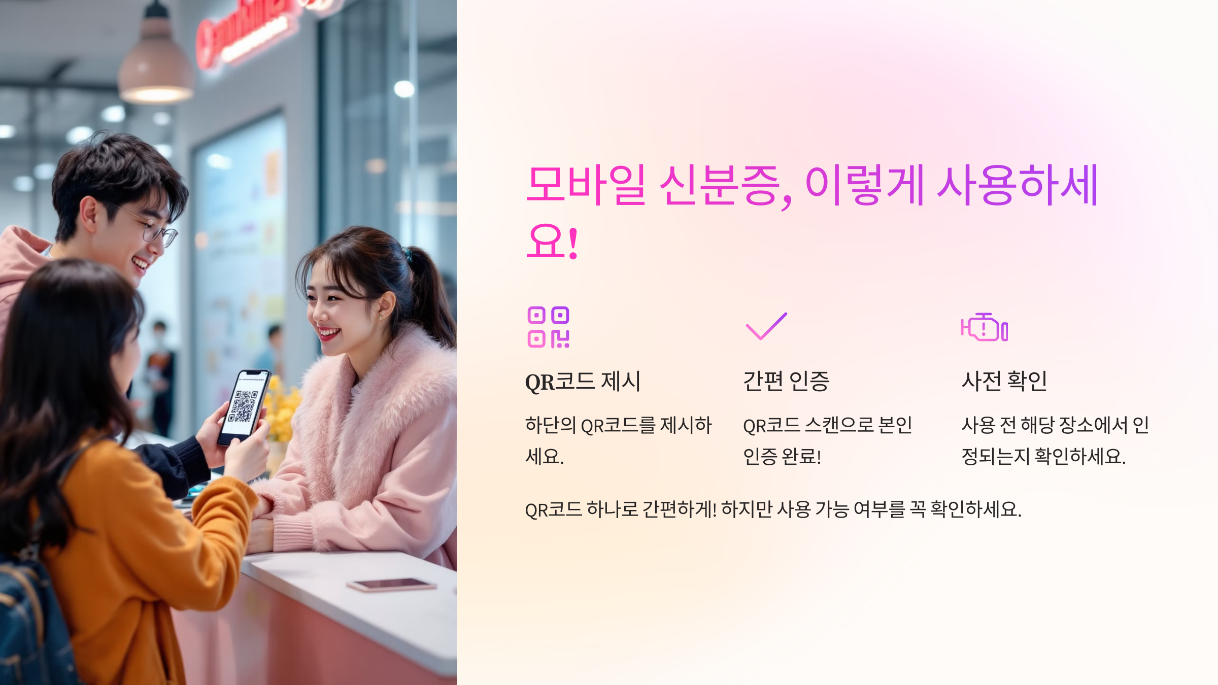 신분 확인이 필요한 곳에서 QR코드를 보여주는 것만으로 간편하게 본인 인증이 가능하다.